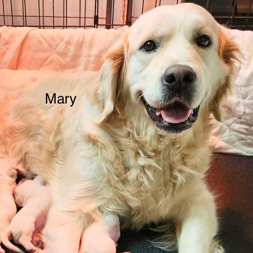 Beautiful, stocky and sturdy, that’s our Mary. She has a gorgeous blocky head and stocky build that is show quality. She is smart as a whip and incredibly loyal but loves attention and to be right by your side. As if that wasn’t enough, she is also a very chill and relaxed dog most of the time. Mary has an excellent demeanor and that is evident in her as a mama as well. She is a great mama and shows her playful side when she plays with her puppies. Like her “sister”, Kiya, Mary is a hugger and loves to be wherever you are.