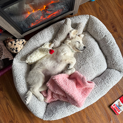 Ruby-Jane is making excellent progress. House training is going very well, I don’t want to jinx it but I’d say we’re about 90% there. No accidents in the house in 2 days! But our biggest achievement is kennel training, she’s fully adjusted to it and we can confidently leave her in there 1-3 hours during the day without accidents or complaints from her, and she sleeps in there all night (with a 3am let out, but recently we’ve had to bribe her out of the kennel for that let-out).